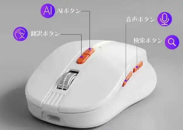 ThinKlick本体には、一般的なマウスにはない「高感度マイク」と「AI専用ボタン」が物理的に搭載されています。