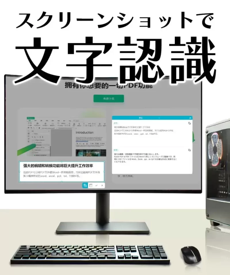 - 高度なOCR(文字認識): 画面上の画像やコピー不可なテキストを瞬時に読み取り、編集可能なデータに変換します。